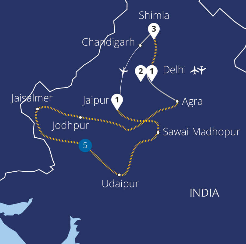 Follow in the footsteps of maharajas on our bestselling Indian tour, uncovering the gems of India's Golden Triangle and the former colonial retreat of Shimla. Embrace the many wonders of this mystical country on this unrivalled overland journey. Enjoy the bustle of Delhi's bazaars on a rickshaw ride, visit Shimla to uncover the former summer...