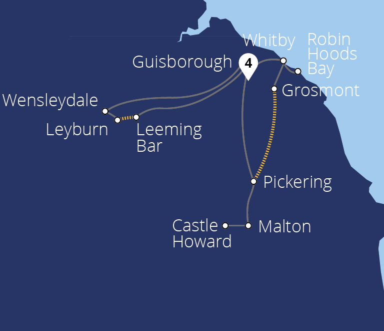 Explore world-famous York with its breathtaking minster, timeless lanes, historic city walls and National Railway Museum. Discover the elegant Georgian spa town of Harrogate or uncover the beautiful coastal town of Whitby, famous for its abbey ruins and connections to Bram Stoker's Dracula. Head into the untamed Yorkshire Dales or North York Moors to view wild valleys and rolling hills, best experienced from heritage railways such as the North Yorkshire Moors Railway and Keighley & Worth Valley Railway.