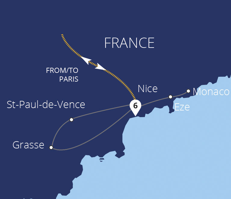 Embrace the sights, scents and flavours of the French Riviera from a boutique hotel in the popular coastal town of Cannes. Admire the wonderful gardens at St-Jean-Cap-Ferrat's opulent Villa Ephrussi de Rothschild and witness the time-honoured Changing of the Guards ceremony in Monaco. Tour the quaint Provençal town of Èze to enjoy...
