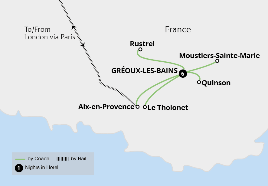Uncover hidden Provence on guided walks alongside emerald rivers, through stunning ravines and into otherworldly landscapes of bright oranges. From a base in the spa town of Gréoux-les-Bains, enjoy a choice of hikes revealing the unspoilt beauty of Provence - a region beloved by renowned artist Cézanne. Explore the Verdon Gorge, view Mont...