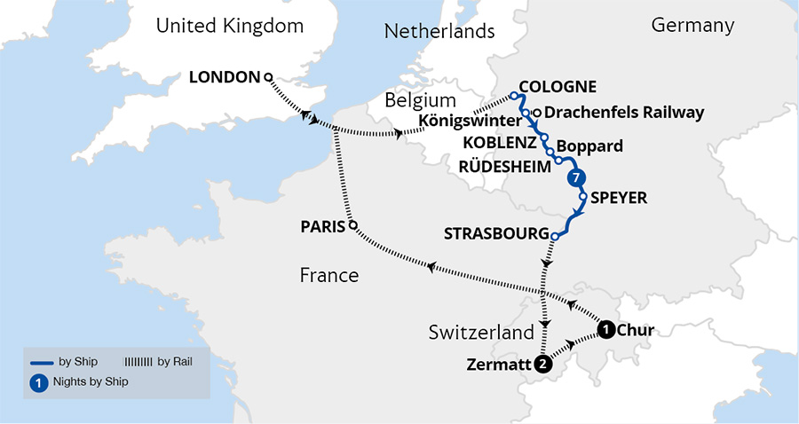 Sail the most scenic parts of the Rhine, enjoy free time in charming towns and cities, followed by three nights in Switzerland and a journey on the iconic Glacier Express
